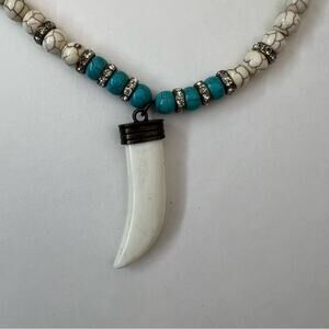 Tooth Shaped Beaded Necklace and Two Bracelets Jewelry Lot (3 Pieces)