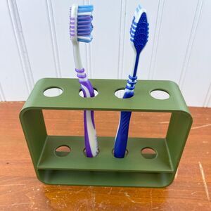 This stylish modern toothbrush holder is just what your bathroom needs. This 3D printed holder is made to hold 4 old fashioned manual toothbrushes.
