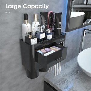 🧿Large Capacity: The toothbrush holders for bathrooms have super storage capacity (1 tray, 1 storage compartment, and 1 drawer), not only can store combs, toothbrushes, toothpaste, soap, razors, etc., You can also put commonly used cosmetics and accessories in this bathroom decor to keep it clean and tidy.
