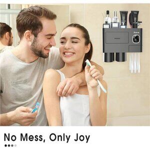 🧿Multifunction: This multi-function toothbrush holder comes with a automatic toothpaste dispenser, making it easy to squeeze the toothpaste without waste. The 2 magnetic mouthwash cups are designed with an upside-down drain, dust-proof and waterproof. You can hang 6 toothbrushes simultaneously, which is suitable for the whole family.