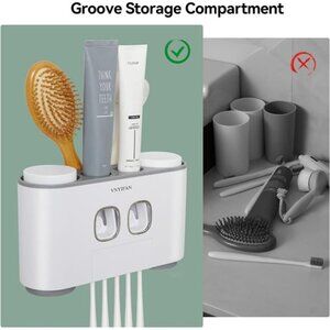 🧿💕【Multifunctional Toothbrush Holder】More cost-effective than buying a toothbrush holder or toothpaste dispenser or wash cup separately, our bathroom toothbrush holder set has 4 in 1 functions (1. Hang Five Toothbrushes; 2. Squeeze Toothpaste Function; 3. Come with Four Cups; 4. Large Storage Table) Save at least $10
