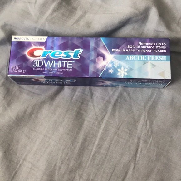 It has pretty packaging and has never been used and it’s 3-D white so it makes your teeth really really white