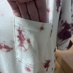Short sleeve top w/ vneck. Sleeve w/ cuff. Left breast pocket. Super soft material. Neck to sleeve 10 1/2”. Pit to pit 21 1/2”. Length 29”. 63% Polyester/ 34% Rayon / 3% Spandex.