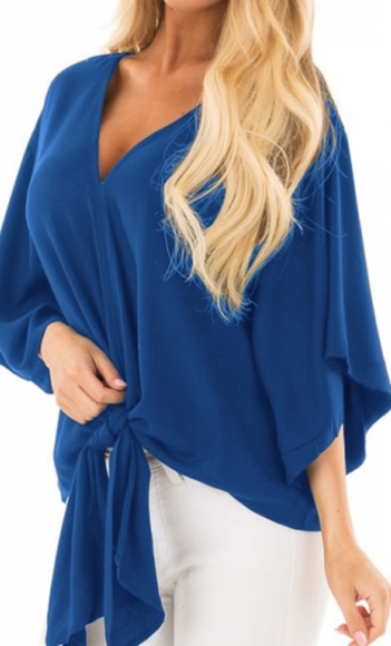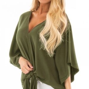 Pretty Blue or olive green top with tie in the front and V neck. Beautiful top, very nice material. Two colors to choose from.