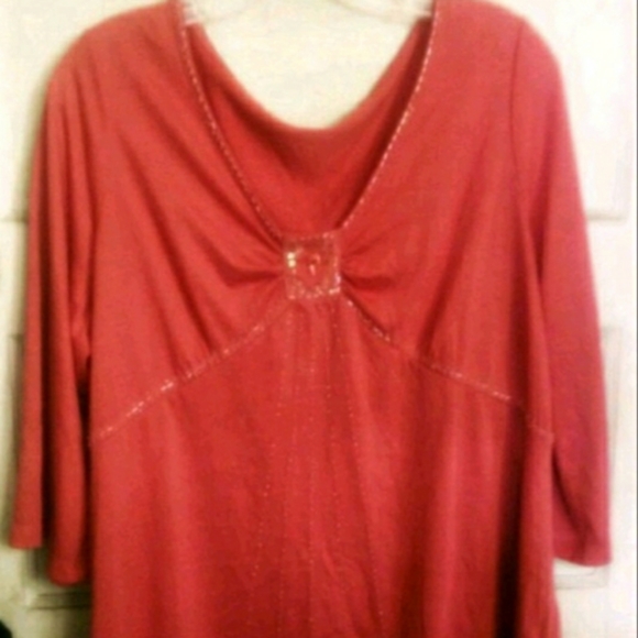 Red, glass bead decorated ( faux), 1/4 sleeve, used
