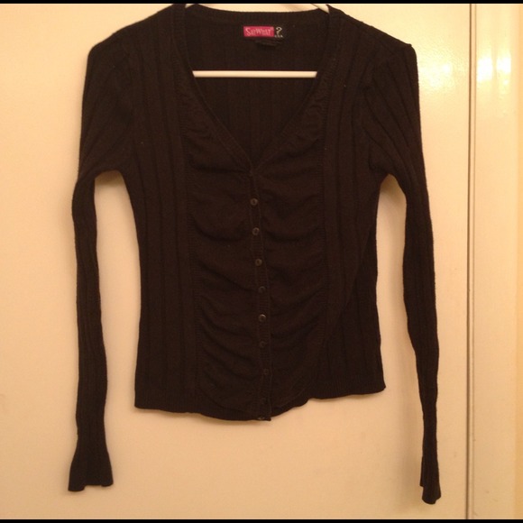 Long sleeve. Black. Button up. Striped. Gathered front.