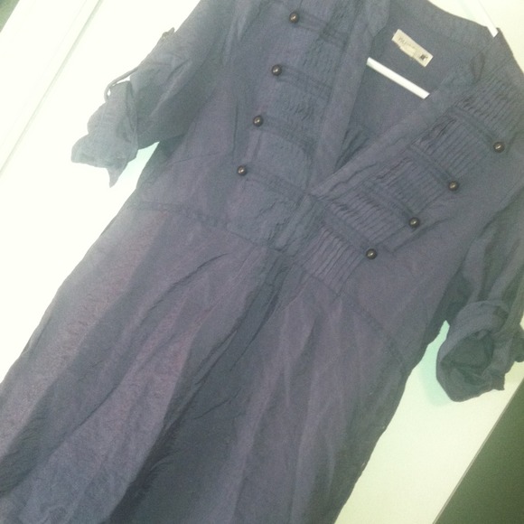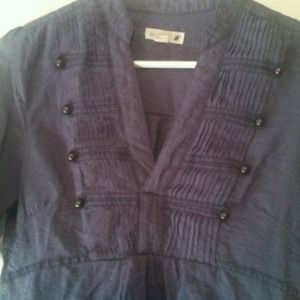 Military style blue top with back tie. I love this top and I just purchased here on PM, but it's too small:(. I love this top and wished it fit me. The material feels silk like .