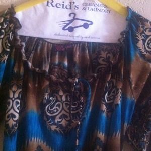 Great top gathers at bottom . Looks great with jeans!