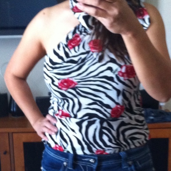 Halter top zebra and rose design