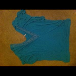 Blue top with a lacy look, very comfy. In ok conditions not bad though. From rue 21