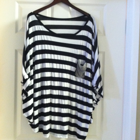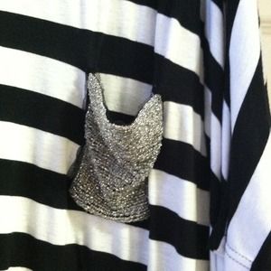 White and navy strip top with beads pocket great for over ur swim suit or yammer dress very loose fit(4-6)