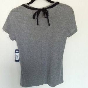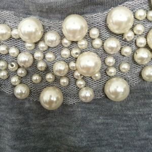 Gray pearl and lace sequence on the neck line and a bow in the back to finish it off