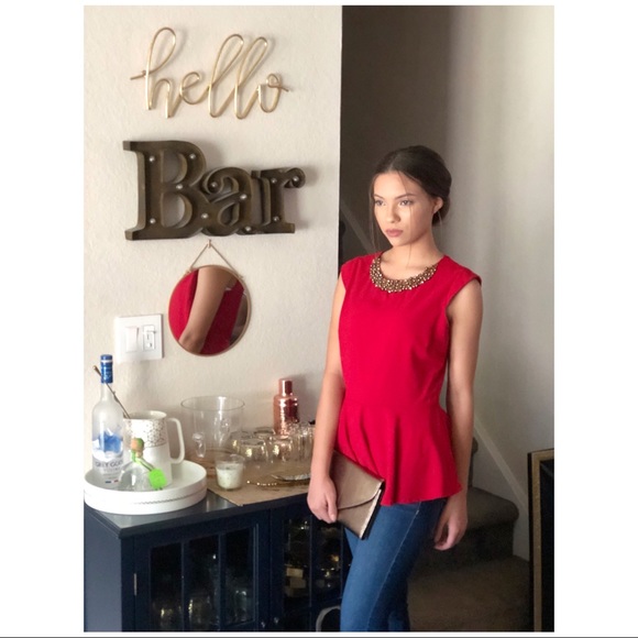 This stunning red peplum top is so beautiful. Perfect for the holidays and has a beautifully beaded collar.
