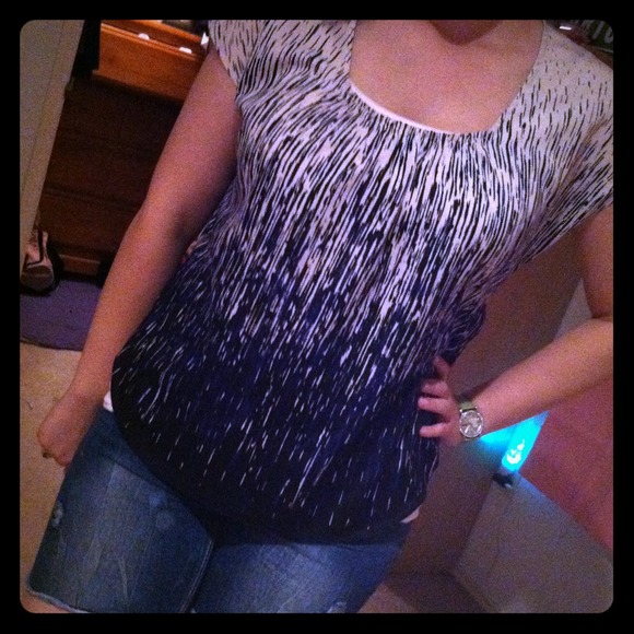 Really pretty multicolored top with blue paint streaks. In good condition.:)