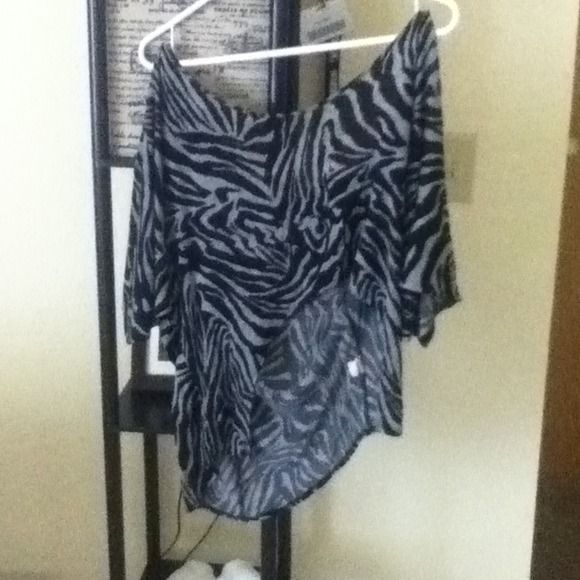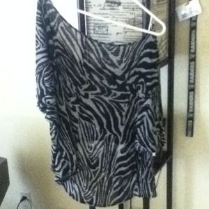 This is a half shirt also! It goes up in the front to show off your sexy naval and long in the back to cover up your bumm! Black and grey zebra print swirls together to make a fabulous going out shirt!