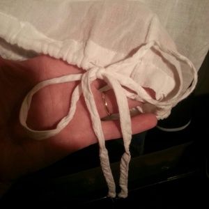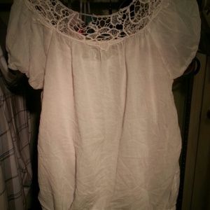 White blouse w/crochet top, also has draw string at bottom. Never been worn, also no stains!!