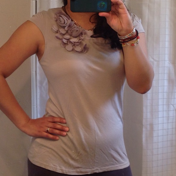 Gray top with some elegant flowers on the right side, very good shape, worn once.