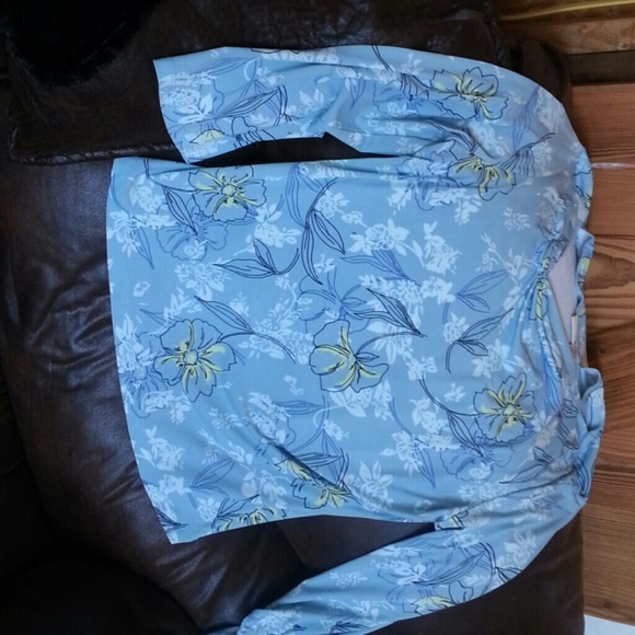 Merona XXL light blue, long sleeve with hint of yellow on flowers! White flowers and flowers trimmed in royal blue! Fits more like 1X or a large XL! Never worn.