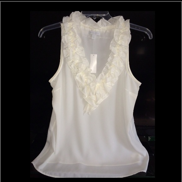 Cream ruffled top/cami. Great for layering under blazer or cardi.
