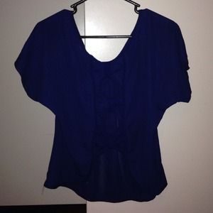 Navy blue, short sleeve too. Has bows on the back giving it a little but of an open back.