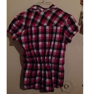 Hot Pink,White &'d Black Flannel Shirt. It Has An Adjustable Back Part. Worn Once.