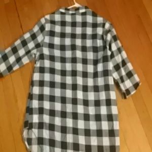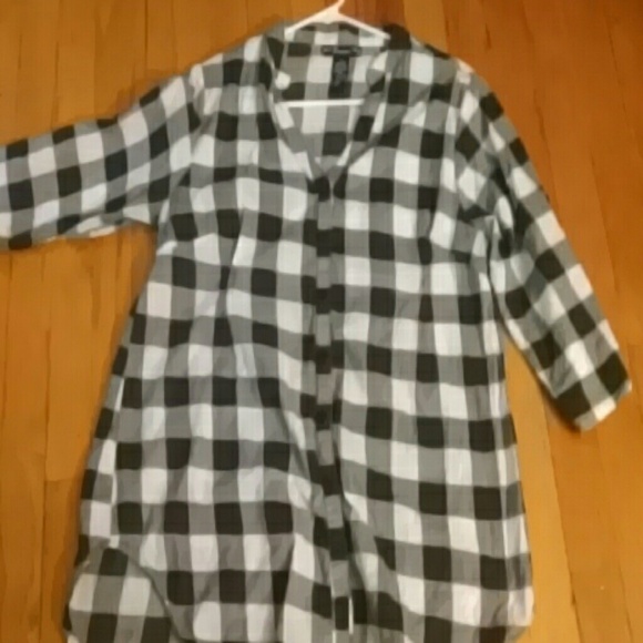 Plaid black and white top. Can be used buttoned up or unbuttoned. Can be worn with a belt, tucked in, tied up, you name it.