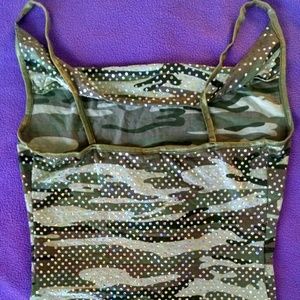 Silver Sequins Cami with a dip neckline.Some of the sequins is missing. Comfortable