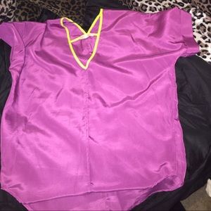Loose fitting . ( run big ) never worn . Tag still attached . I will negotiate or trade !!! I just want this stuff gone ! Purple & lime green