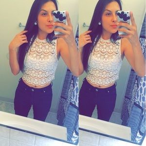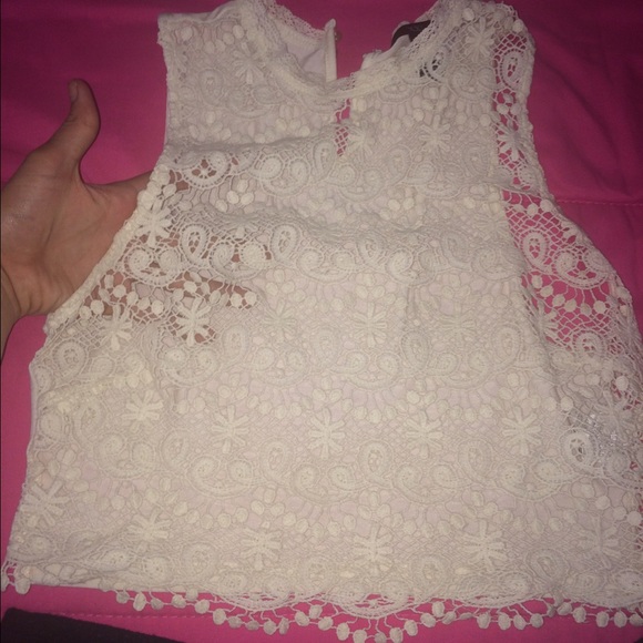 Crochet, shows a lot, high neck, crop top. Kinda like a halter top. Super cute for summer