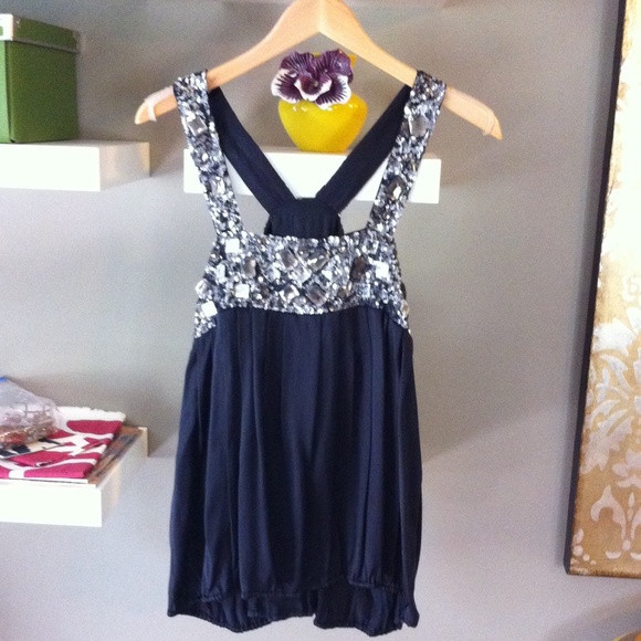Dressy top with pleated black silk bodice. Size medium. Only wore it a couple of times. High low bottom with loose elastic, drapes nicely.