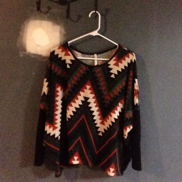 Large Aztec top! Dark green, burnt orange, white, black and brown! It is so cute! The sleeve is 2/3. Very comfy and great condition! Please use the offer button! :)
