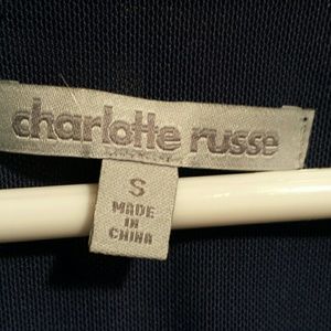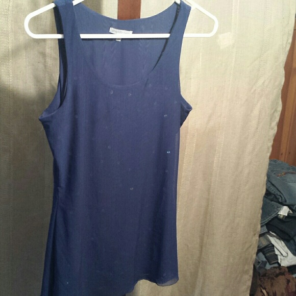 Polyester and 10% spender. Very soft and comfortable. For a small it fits loosely. Sequins under front panel.