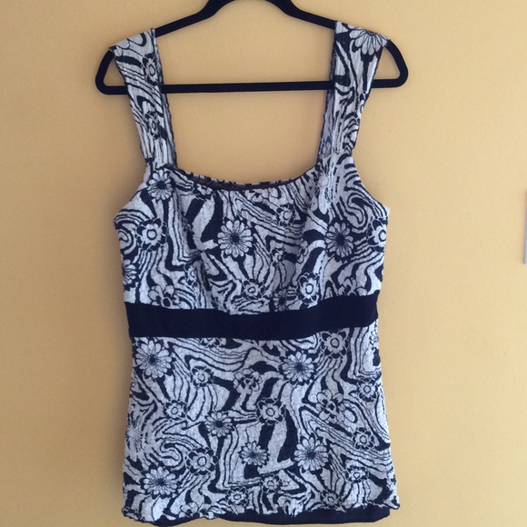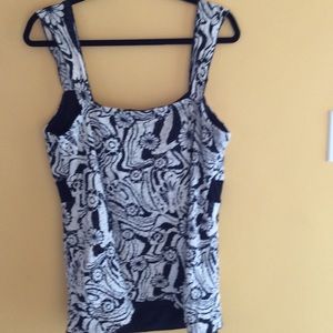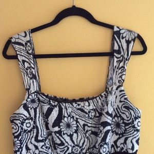 Black and white no sleeves top, two layers of cloth, wide but thin straps, very cute and in great condition