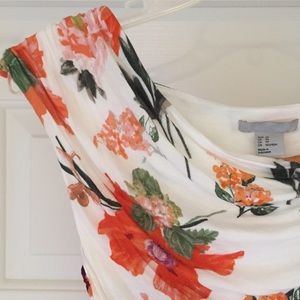 Whimsical, romantic and sleek all at the same time! This top fits snuggly yet is forgiving as it is made of a cotton/rayon/ blend with some stretch. Also, it has never been worn!