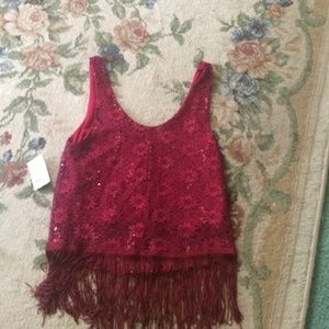 Never worn before, red tank top,little bit of a crop top, has a flower print with some sparkle