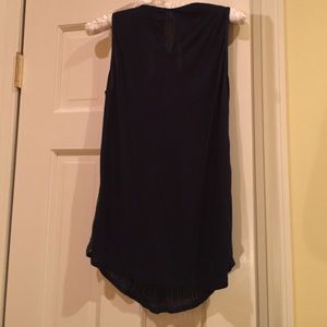 Ecru brand navy blue sleeveless low scoop neck with flare fit. Gorgeous stitched in detail that gives off the shine. Evening or day.