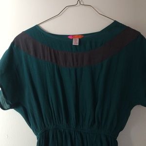 Turquoise and gray top with synch waist