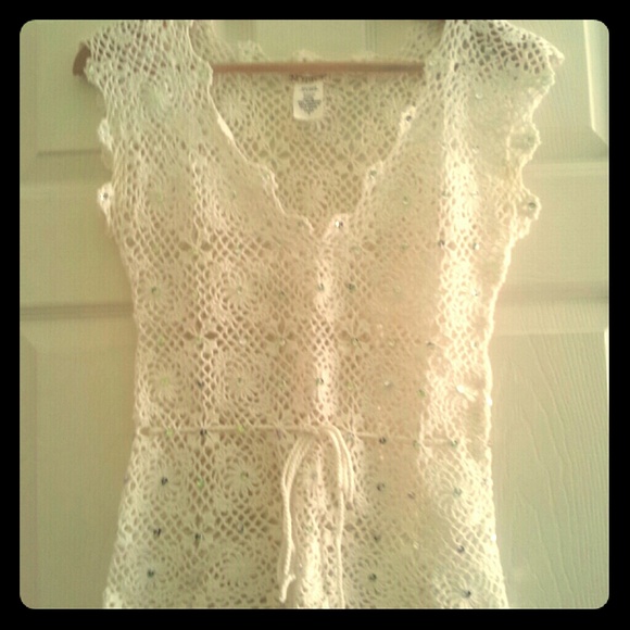 Ivory crochet top with silver sequin
