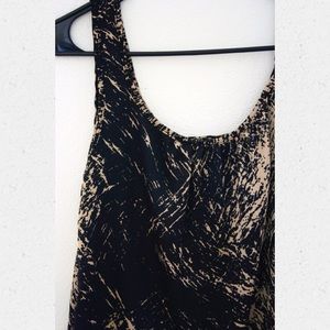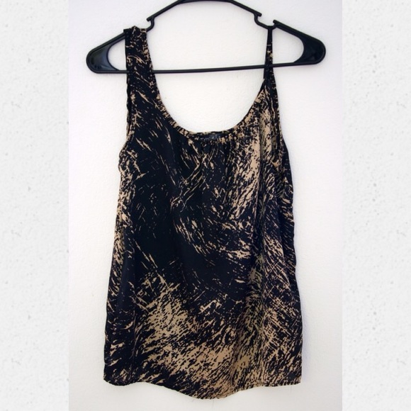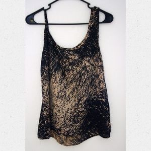 Loose-flitting tan and black silk-textured tank top. Like-new condition.