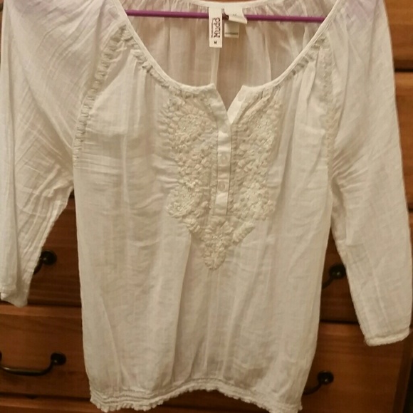 White top with bead design. Elastic on bottom and flowy on top.