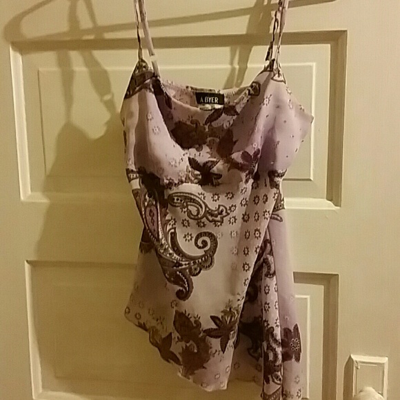 Floral purple tank, bottom is frilly and slopes to one side