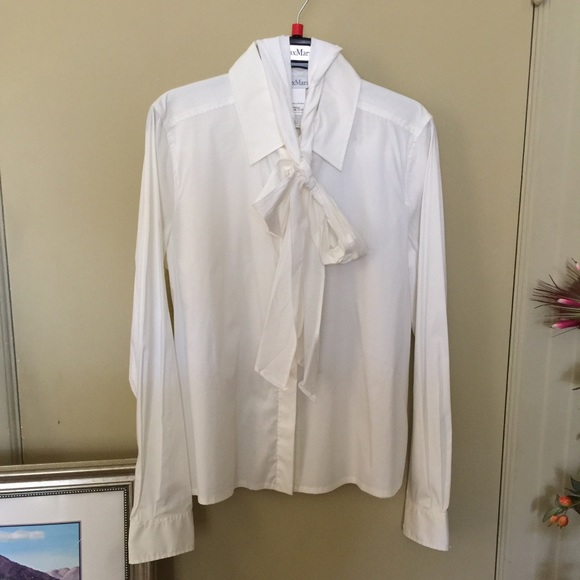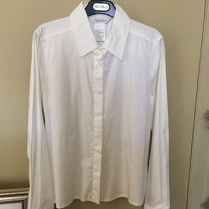 Brand new white (not a pure white) Max Mara white button down with hidden button and removable now that you can use as AV bow or a belt- includes tag ๐ 1 hour Sale