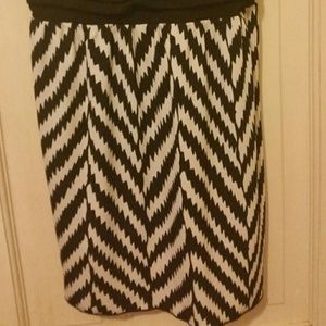 Thin silky material, blk wht lightening bolt design with blk waist belt accent. Cute with jeans or paired with night out outfit.