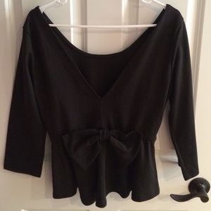 Deep V-neck back with bow, black