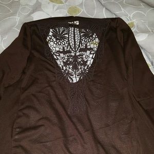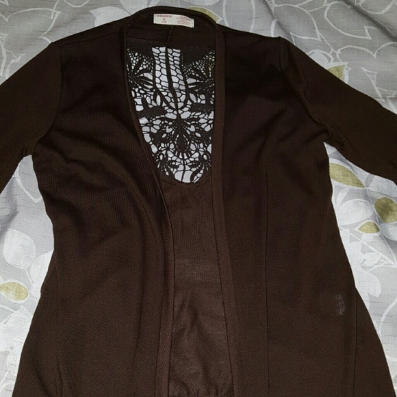 Brown 3/4 sleeves knit cardigan with crochet back medium