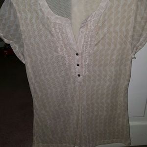 Sheer beige and white dress blouse with gold buttons medium