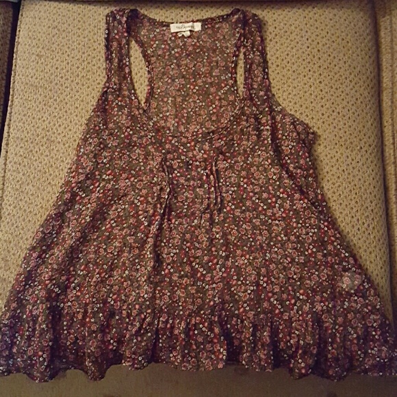 Sheer floral print top with racer back and riuffled bottom. Excellent condition. No rips, tears or marks
