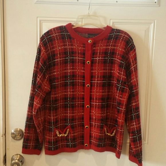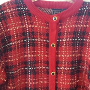 Beautiful red sweater/top with gold accents and gold threading. This is a deeper red not orange.