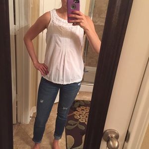 This super cute top has been worn. Would look cute in the summer with shorts or under a denim jacket in the fall!