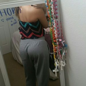 Very silky outside, sooo comfortable inside (: tight around the stomach area. Worn 3x ... 10/10 condition... Tan, pink, blue, white